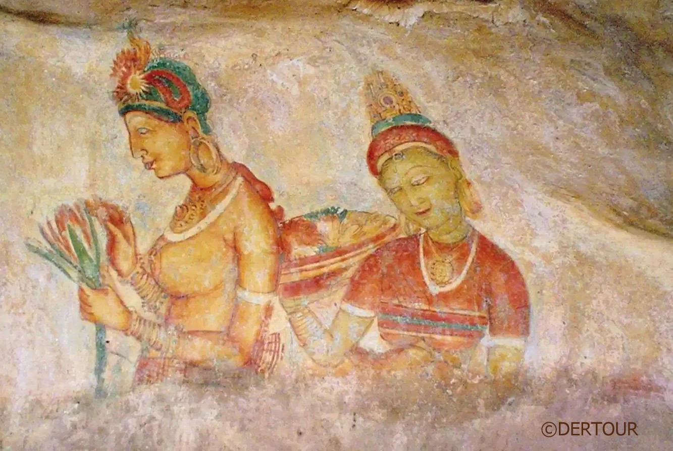 4. Tag / 114 km: Heute stehen die Besichtigungen der UNESCO-Weltkulturerbestätten Sigiriya und Polunnaruwa auf dem Programm. Etwa auf halber Höhe des Löwenfelsen unter einem Felsüberhang schweben die „Wolkenmädchen“ an der Felswand. Ursprünglich gab es ungefähr 500 dieser Fresken, heute sind nur noch 22 zu sehen, die über eine steile Wendeltreppe erreicht werden können.