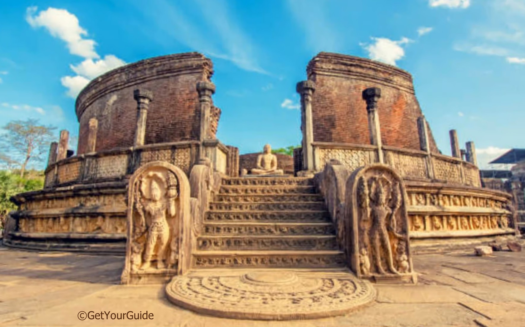 Besonders schön ist das kreisrunde Reliquienhaus, das ursprünglich zur Aufbewahrung des heiligen Zahns von Buddha diente, der sich heute in der letzten Königsstadt von Ceylon, in Kandy befindet.